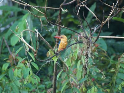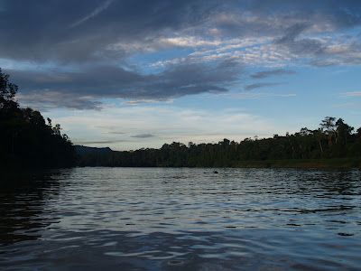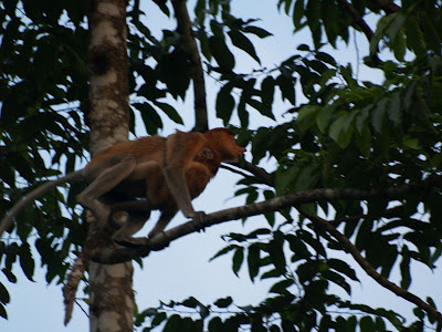 have dinner at 7 and it's time to share experiences and stories with people from different parts of the world. The desktop is short since we left at 8 in the boat again to participate the "night cruise." Although the goal is to see nocturnal animals gives me the feeling that what we get with the powerful source that uses the phone to illuminate the river bank and the branches of trees is to annoy every living creature trying to sleep. Perched birds, owls elegant, two small crocodiles that show their prominent eyes on the dark waters, several groups of proboscis monkeys now in absolute silence, a confused boar and little else apart from the fireflies that give a little color to black night. The accumulated fatigue of the day and relaxed for a few moments ago that I too fall asleep, do not have to wait too long for me fall into the ancient bed.