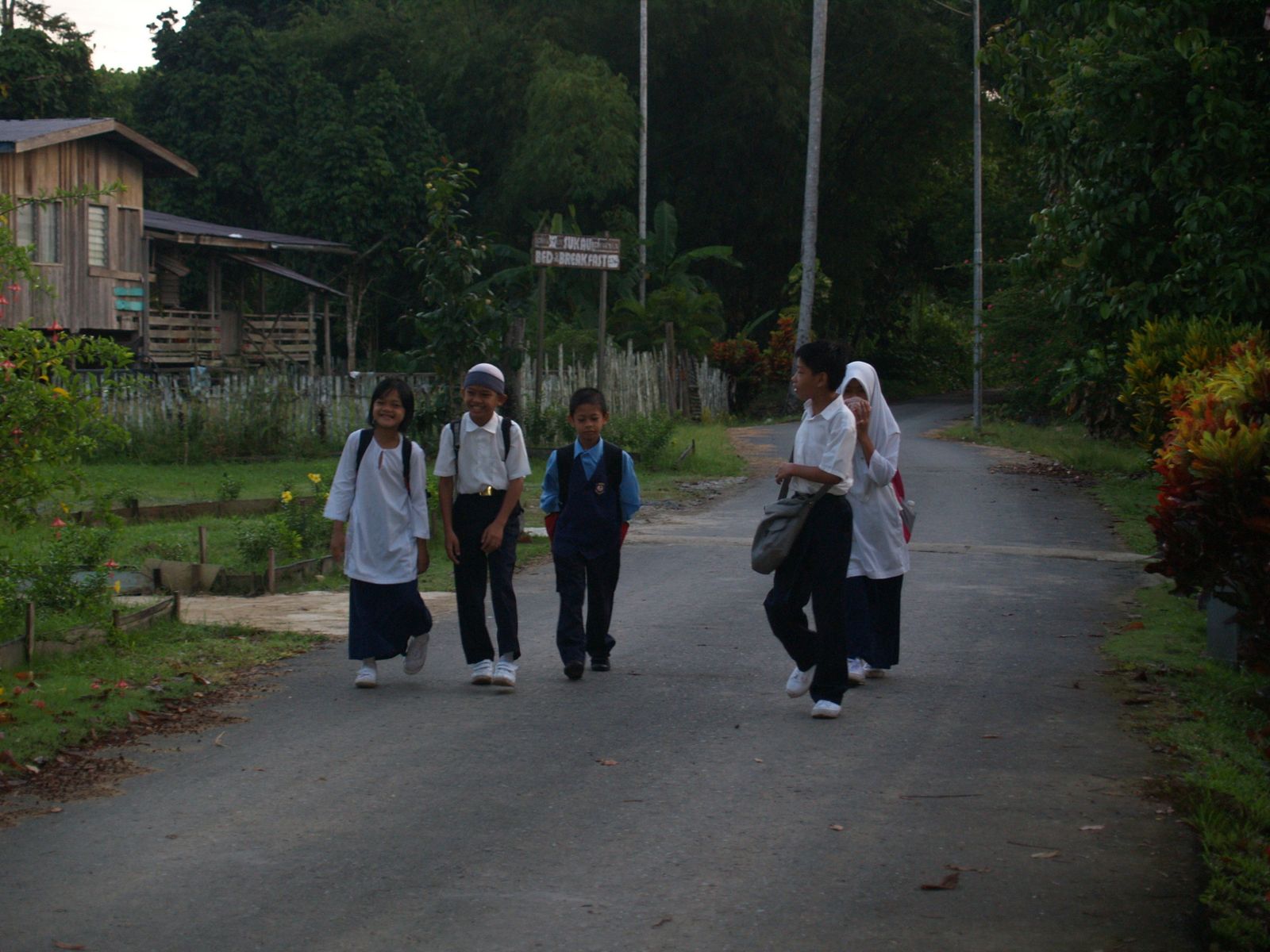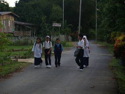 Turn to get up early because at 6:30 in the morning we will pick up the bus to Sandakan. Here the day starts very early and we'll have breakfast ready. At that time, children from surrounding villages and walk to school well groomed and neat.