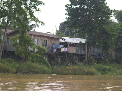 wooden houses on stilts in contrast to some tourist lodges are spread along its banks.