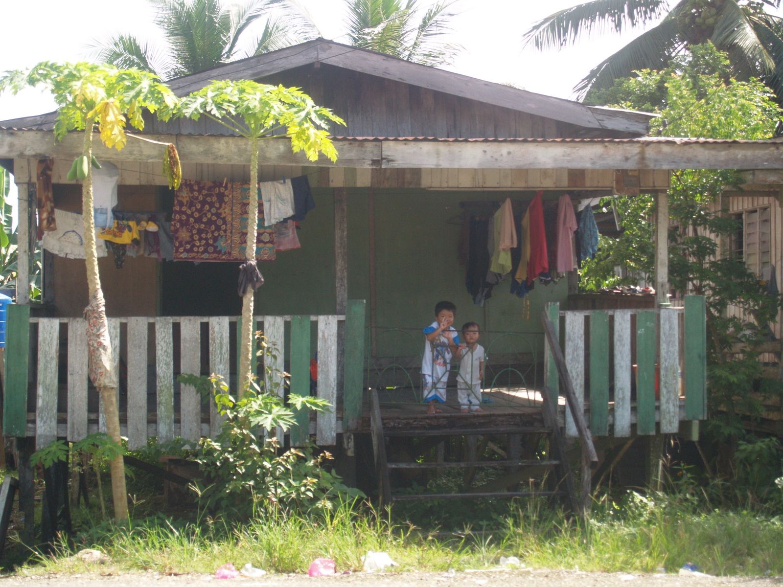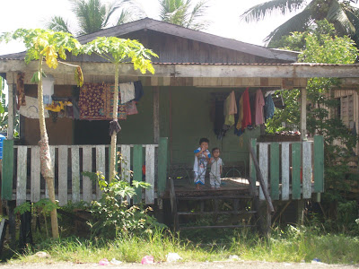 After breakfast we take a leisurely stroll to the village of Sukau is located less than two miles from the B & B. As soon as we have come across a vehicle, four wheels either, if any motorcycle. Fluttering butterflies, roosters and hens with their chicks roam freely in the middle of the road, giving good shade trees, friendly people greeted us with a "hello" and a smile, a population that lives off the river offered. Life unfolds on its shores and even some sleep in their boats. Sukau is very small, although houses belong to people isolated from their surroundings. The houses, mostly wooden, are very simple and poor maintenance. Children who at that time in school, when they see us come running to go ask our names repeat with smiles trying without much success. A small cemetery, a small mosque, a small shop ... and everything here is a little less the river, of course.
